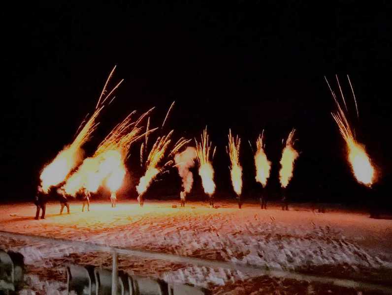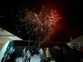 Ein besonderer Höhepunkt des Abends war der Auftritt der Böllerschützen, deren Salutschüsse eindrucksvoll den offiziellen Start des Jubiläumsjahres markierten. Im Anschluss daran erleuchtete ein professionelles Feuerwerk den winterlichen Nachthimmel und begeisterte die Besucher.