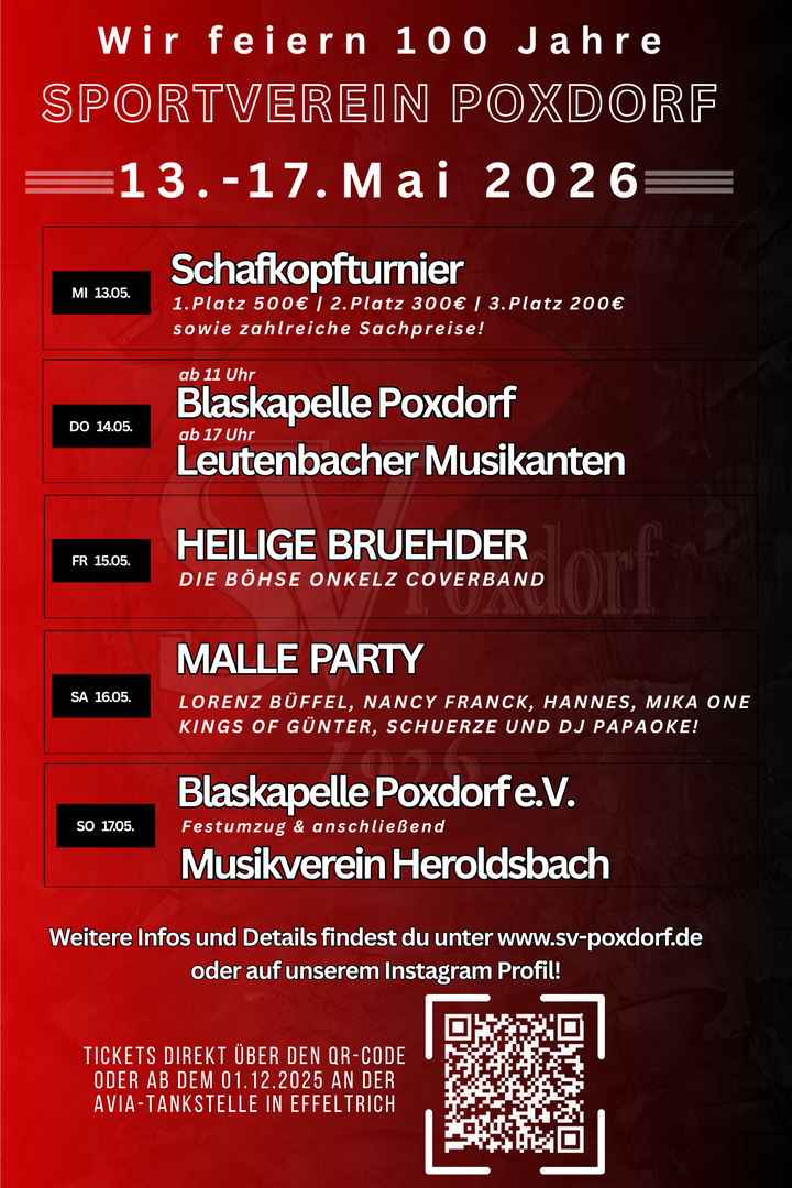 100 Jahre SV Poxdorf – feiert mit uns beim großen Jubiläumswochenende 2026!