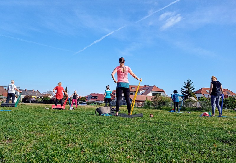 Die Kurse von Kim finden bei schönem Wetter unter freien Himmel statt. So kann man die Übungen einfach mehr genießen.