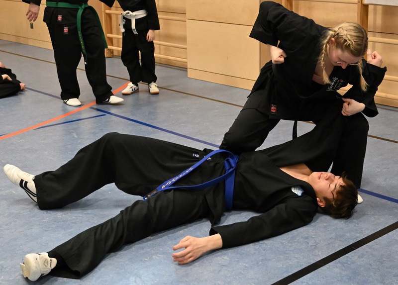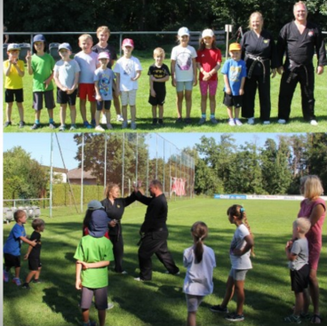 Sabrina Hofmann organisierte für mehrere Vereine diese Aktivität und wir waren wie fast immer ausgebucht. Geplant und durchgeführt wurden: Fallschule, Würfe, Gegenwehr gegen Waffenangriffe, Würgeabwehr, Stockkampf, Gleichgewichtsübungen und vieles mehr.