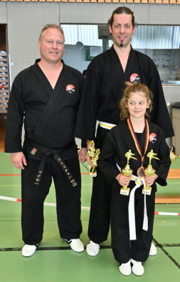 Seit 20 Jahren besuchen die Karateka um Helmut Stadelmann dieses Turnier. Mit einer neuen Generation und mit Unterstützung der bereits erfahrenen Kämpfer der Vereine aus Oberfranken war es wieder mal ein schöner Erfolg. Natürlich war die Anspannung der Neuen zu spüren, aber sie meisterten alle Herausforderungen zur Zufriedenheit der Trainer. Manch umstrittene Kampfrichterentscheidung konnte nicht darüber hinwegtäuschen, dass die Okinawa Kämpfer die erfolgreichsten Teilnehmer stellten. Mit 45 Einzel- und 16 Gruppenstarts in 5 Disziplinen (Karate-Kata, Karate-Team-Kata, Kobudo-Kata, Kobudo-Team-Kata und Freikampf) erkämpften den 1. Platz in der Gesamtwertung Frl. Nele Kleinhenz für Pretzfeld. Dornbusch Max für Poxdorf, Masloff Moritz für Neuses, Geburtstagskind Nina Roppelt für Weilersbach, Alexander Hertlein für Effeltrich und nicht zuletzt Fernandez Javier für Poxdorf.