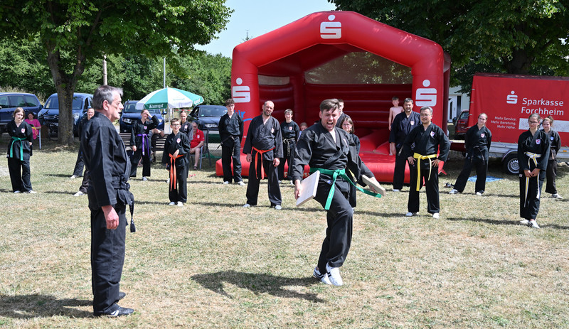 Auch die Karate-Abteilung wurde eingeladen, um mit der Unterstützung befreundeter Vereine aus der Fränkischen Schweiz eine Vorführung zu machen. Gerne sagte Helmut Stadelmann zu und gestaltete mit Thorsten Lehmann eine abwechslungsreiche Stunde.