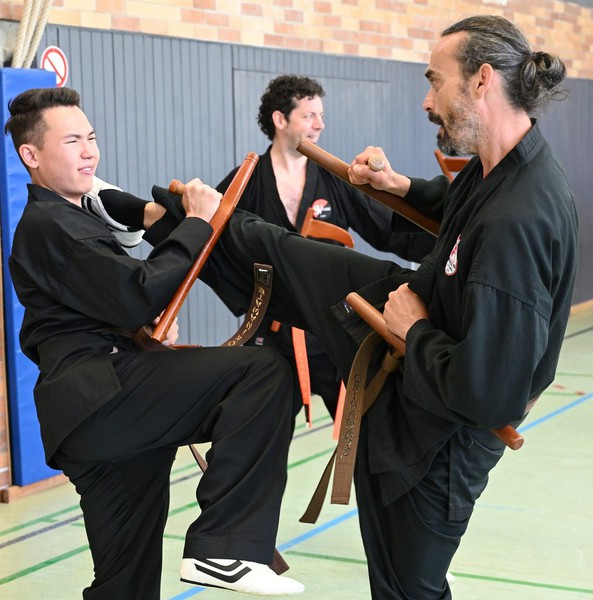 Die historischen Gerätschaften wie Rokushakubo, Tessen, Tankon, Hanbo, Kama und Sai wollen schon im Kihon, Kata und Kumite beherrscht werden. Natürlich bestanden alle ihre schwere Prüfung, da wir nur Personen zulassen, die auch ihren persönlichen Reifegrad erreicht haben.